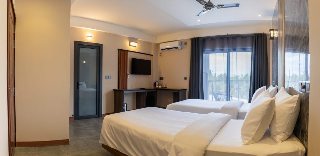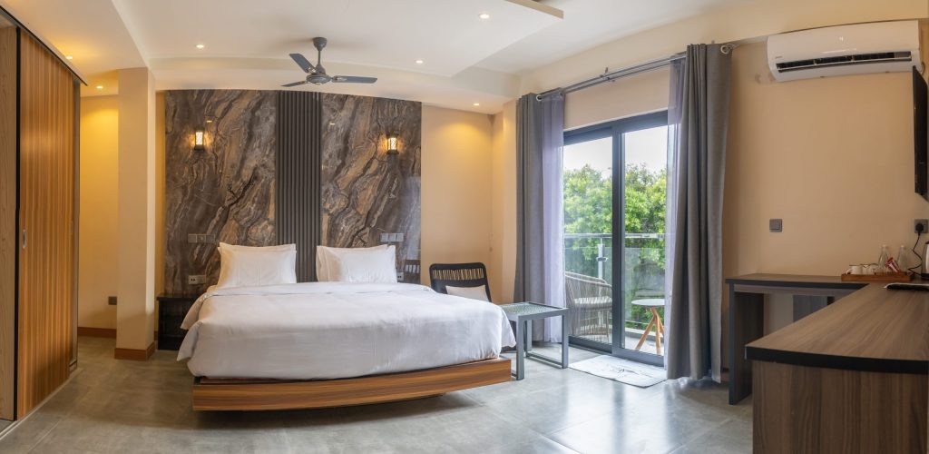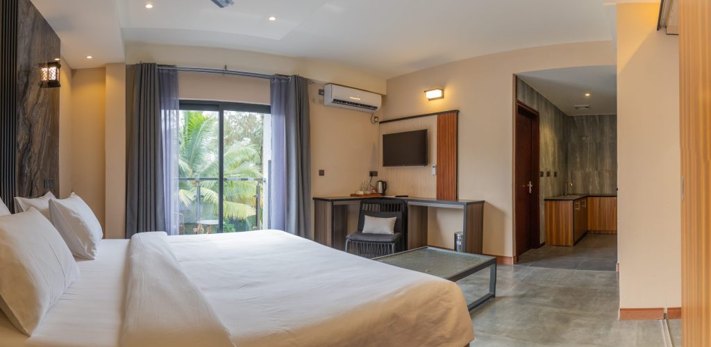 Designed for families, this room features a king-size bed and a connecting twin room. Spacious and comfortable for group stays